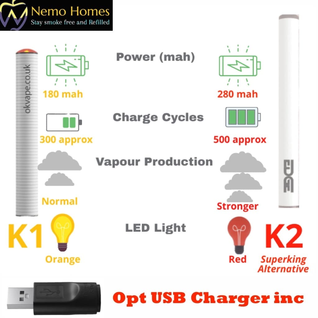 Ok Vape K1 and USB | Edge Battery- K2 SuperKing Alternative