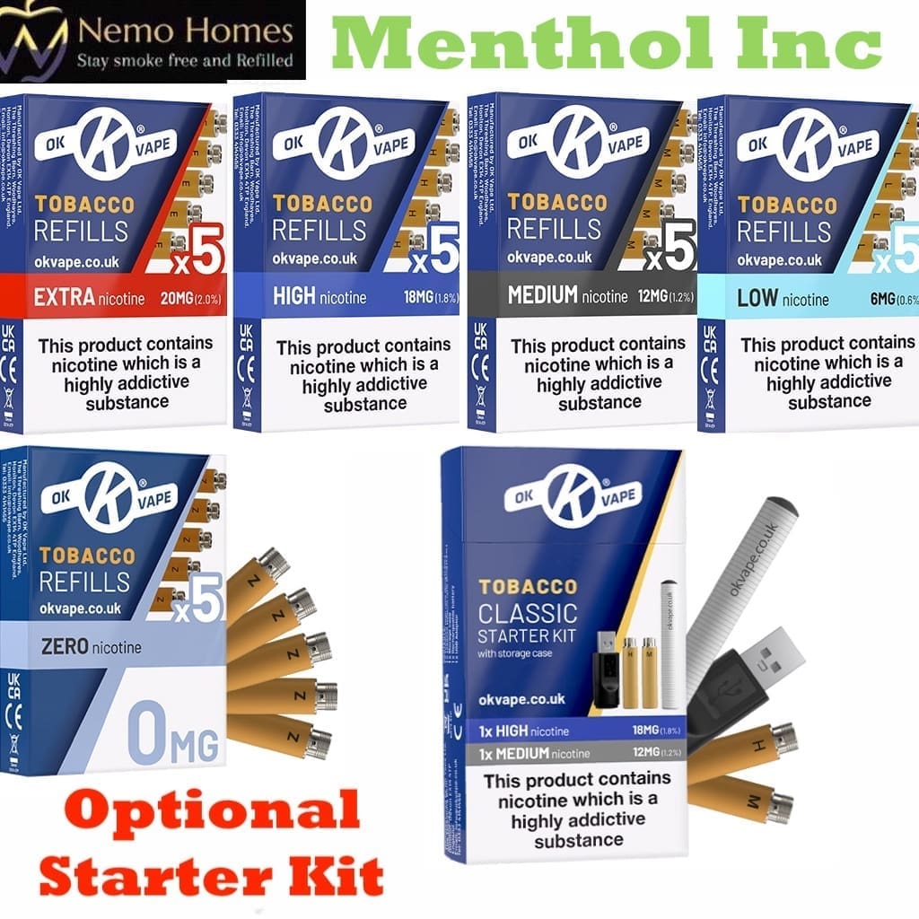 Ok Vape Tobacco and Menthol Refills -20 Pack