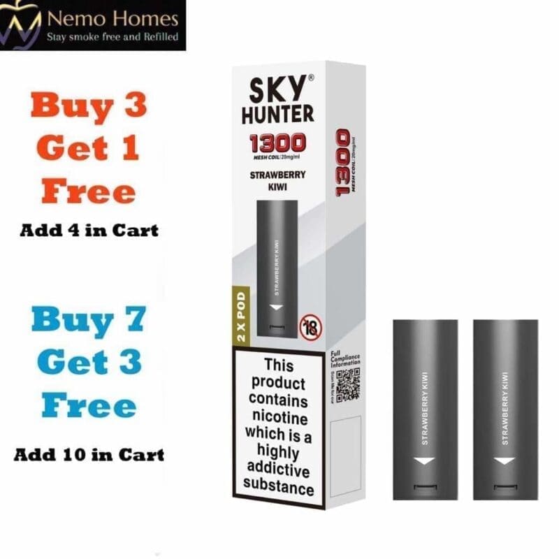 Each pack contains 2 x prefilled pods (600 puffs per pod) to use with your Sky Hunter kit. Just pop into your kit to replace the used ones, with no messy coil changes, navigation screens, or buttons.