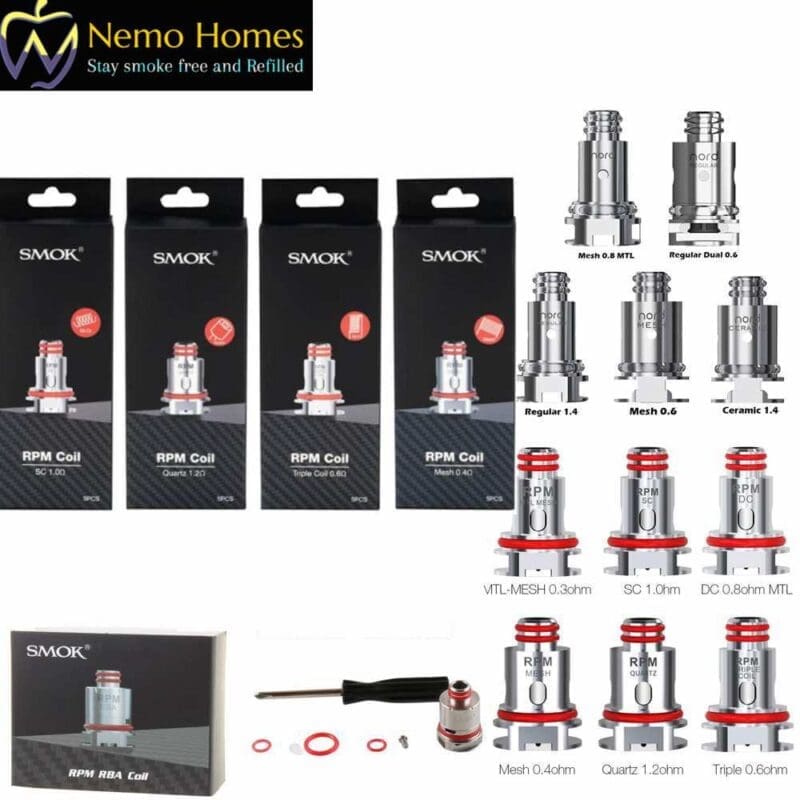 0.3 Ω RPM MTL Mesh, 1.0 Ω SC RPM, 0.8 Ω DC RPM Mesh, 0.4 Ω Mesh RPM, 1.2 Ω RPM Quartz, 0.6 Ω Triple RPM, 0.6 Ω RBA Coil Kit