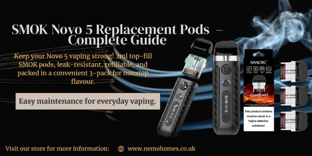 The SMOK Novo 5 Replacement Pods are genuine refillable cartridges designed exclusively for the SMOK Novo 5. Engineered for consistent performance, these pods deliver smooth flavour, reliable vapour, and easy maintenance for everyday vaping.