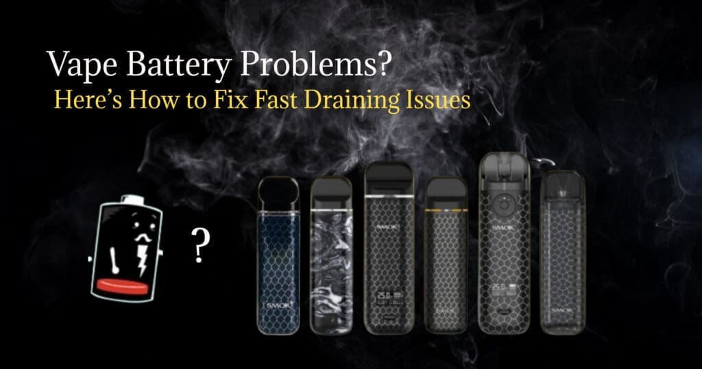 A: Your vape battery may drain quickly due to high wattage settings, sub-ohm coils, chain vaping, cold weather, or an aging battery. The higher the power output, the faster the battery depletes.